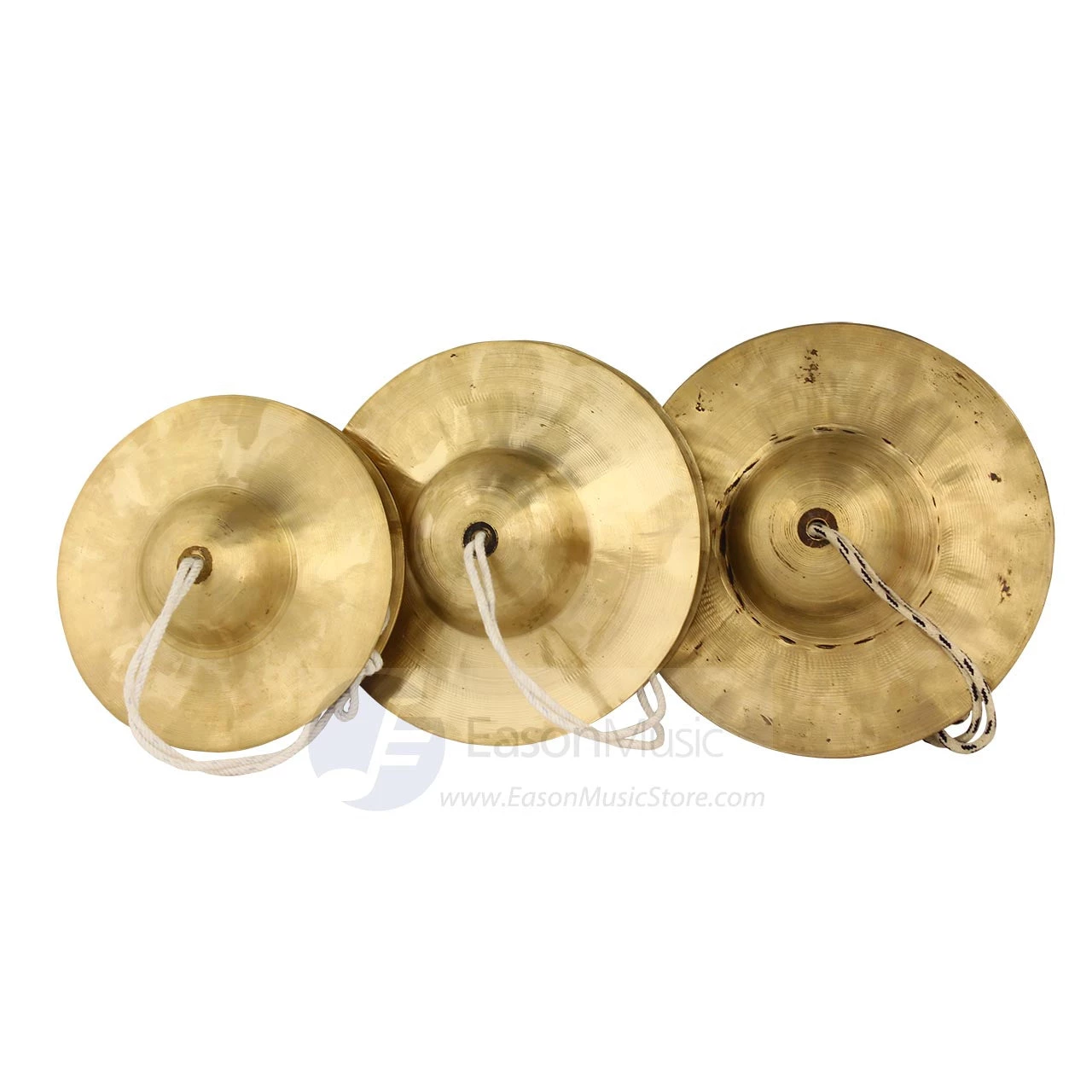 A pair of small Chinese Peking cymbals made of bronze from Wuhan, China measuring 15cm in diameter.
