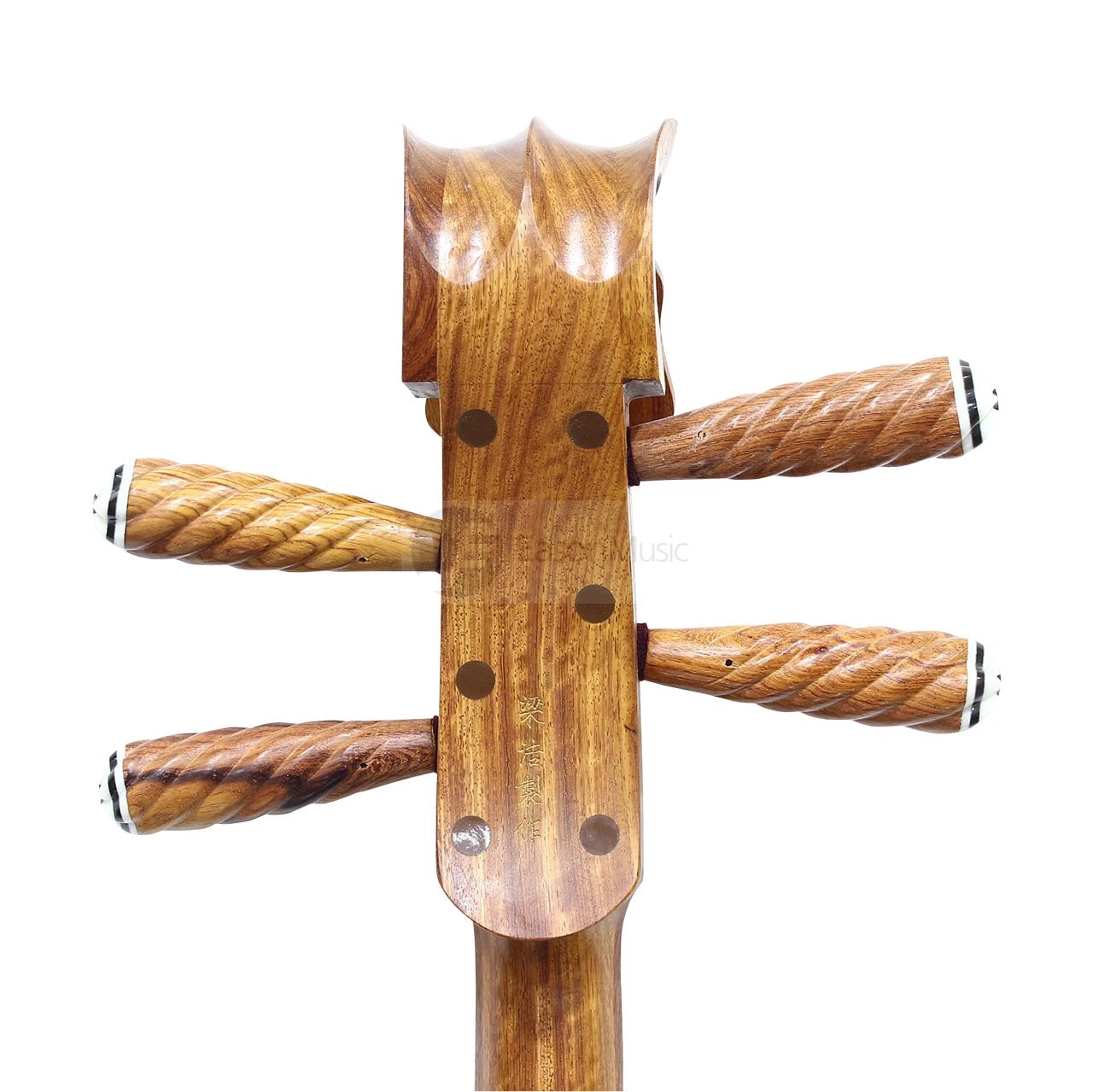 This is a Zhongruan made from Cao Huali Wood by Liang Hao. The frets are made of a composite material that is as durable as metal frets but produce a sound that is not too metallic. This model gives a warm and clear tone. This model is an upgrade over the basswood model in terms of clarity, sweetness of tone and volume. The playability is excellent, making it a favourite among students in secondary and primary school orchestras.