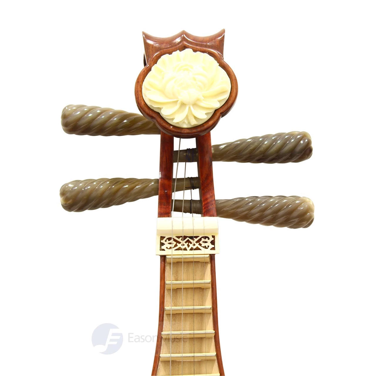 A Concert Grade Liuqin made of Premium Rosewood by famous Liuqin maker Meng Xian Hong in Xuzhou, China. The Premium Rosewood allows the sound produced by the Liuqin to be more rich and resonant. Paired with the White Buffalo Horn pegs, this Liuqin has an added touch of clarity.