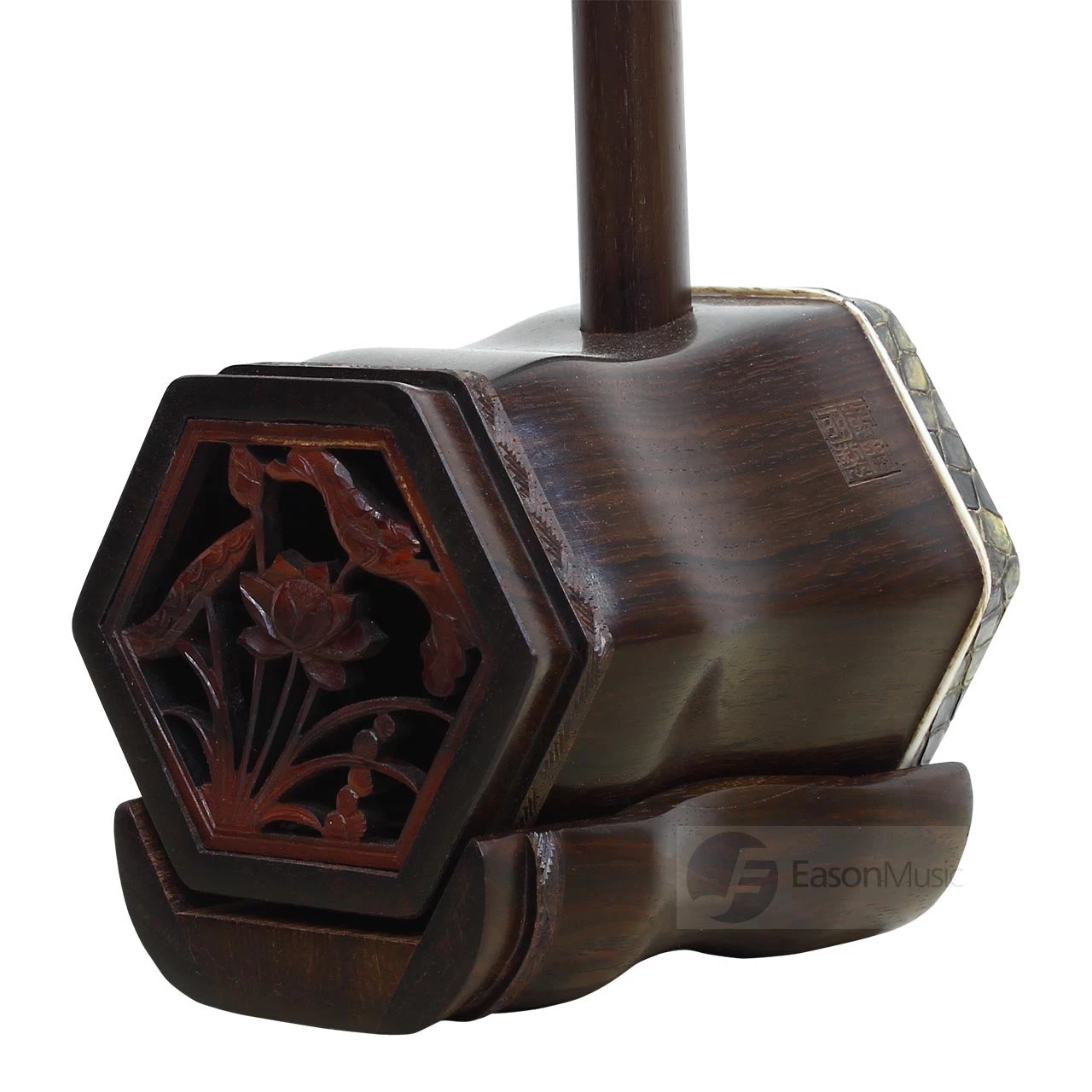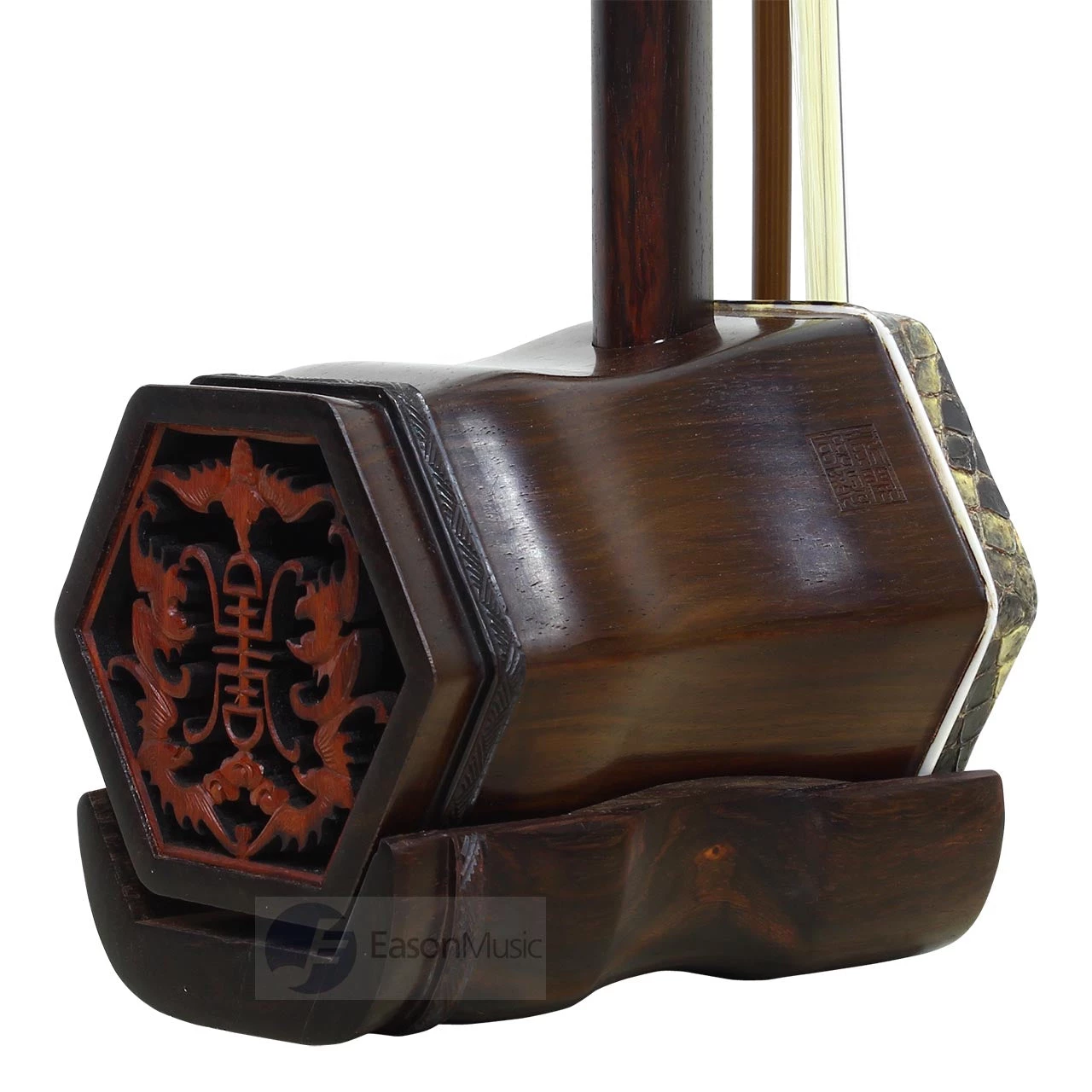 An Erhu made of aged rosewood from the Ming Qing era by maker Yu Kai Ming from Zhejiang China.