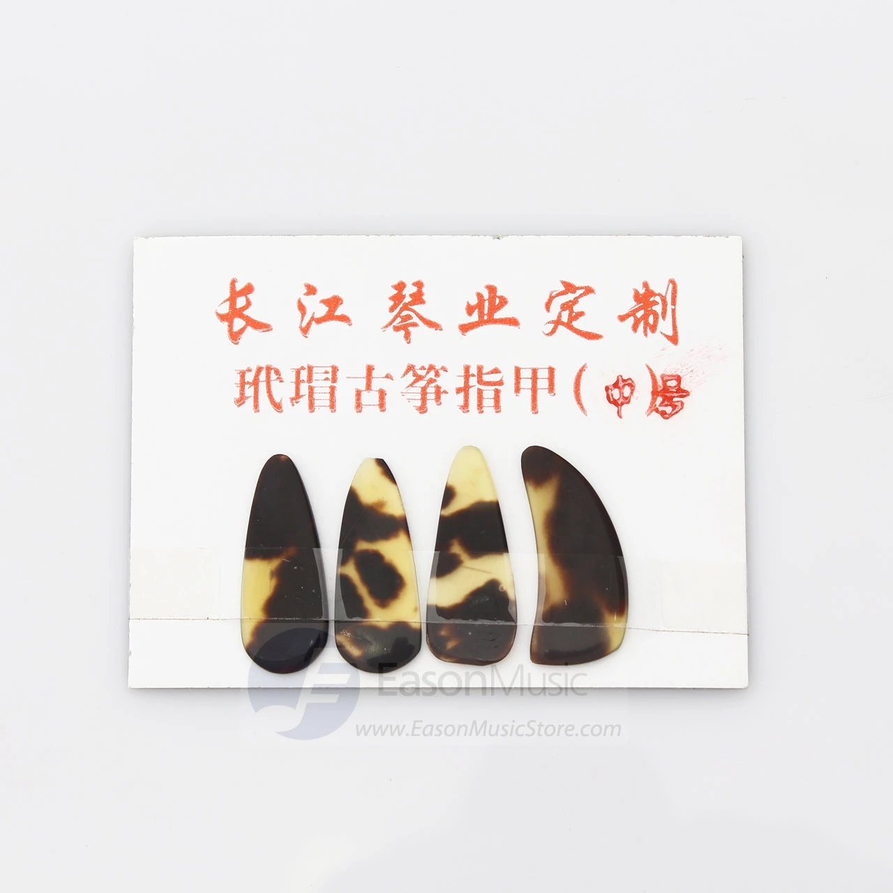These are faux tortoise-turtle shell guzheng nails for adults. They are made of natural materials.
