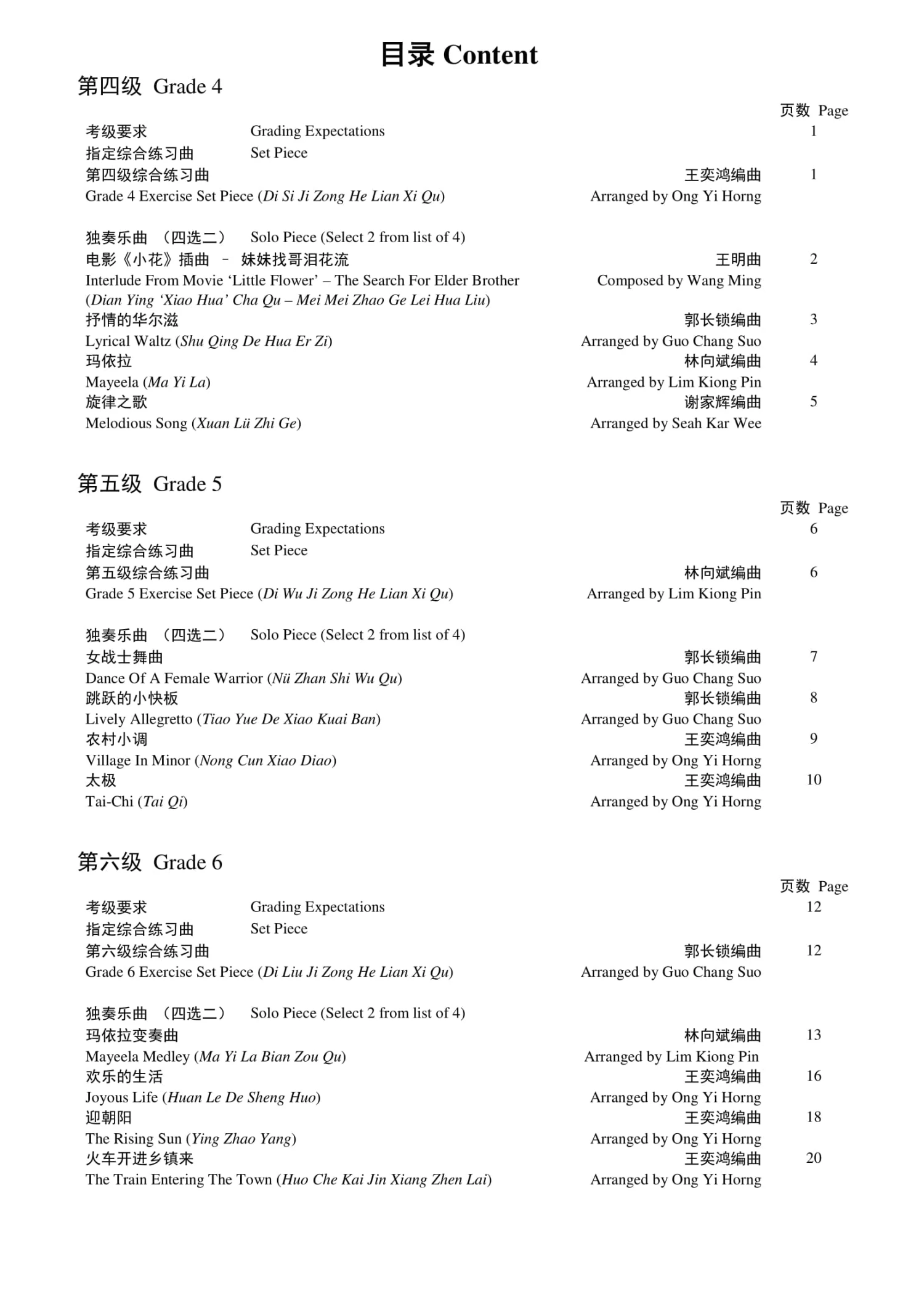 This book is for the Teng Academy Chinese Instrumental Grading Examinations; Grade 4-6 Sheng.