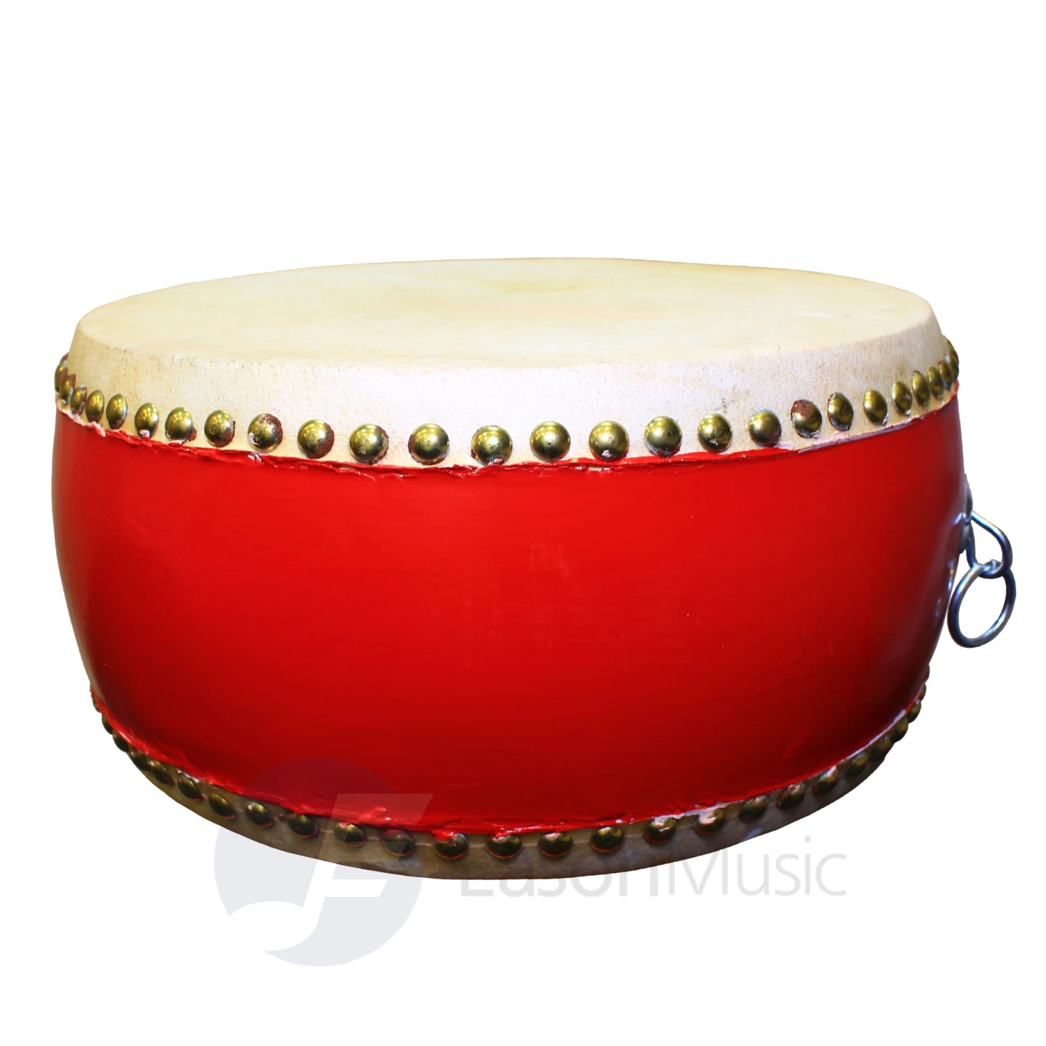 Chinese drum known as the Low War Drum. It is available in diameters of 23cm, 26.5cm and 30cm, and are 15cm in depth. The drumskin is made of cow hide stretched over the top and bottom.