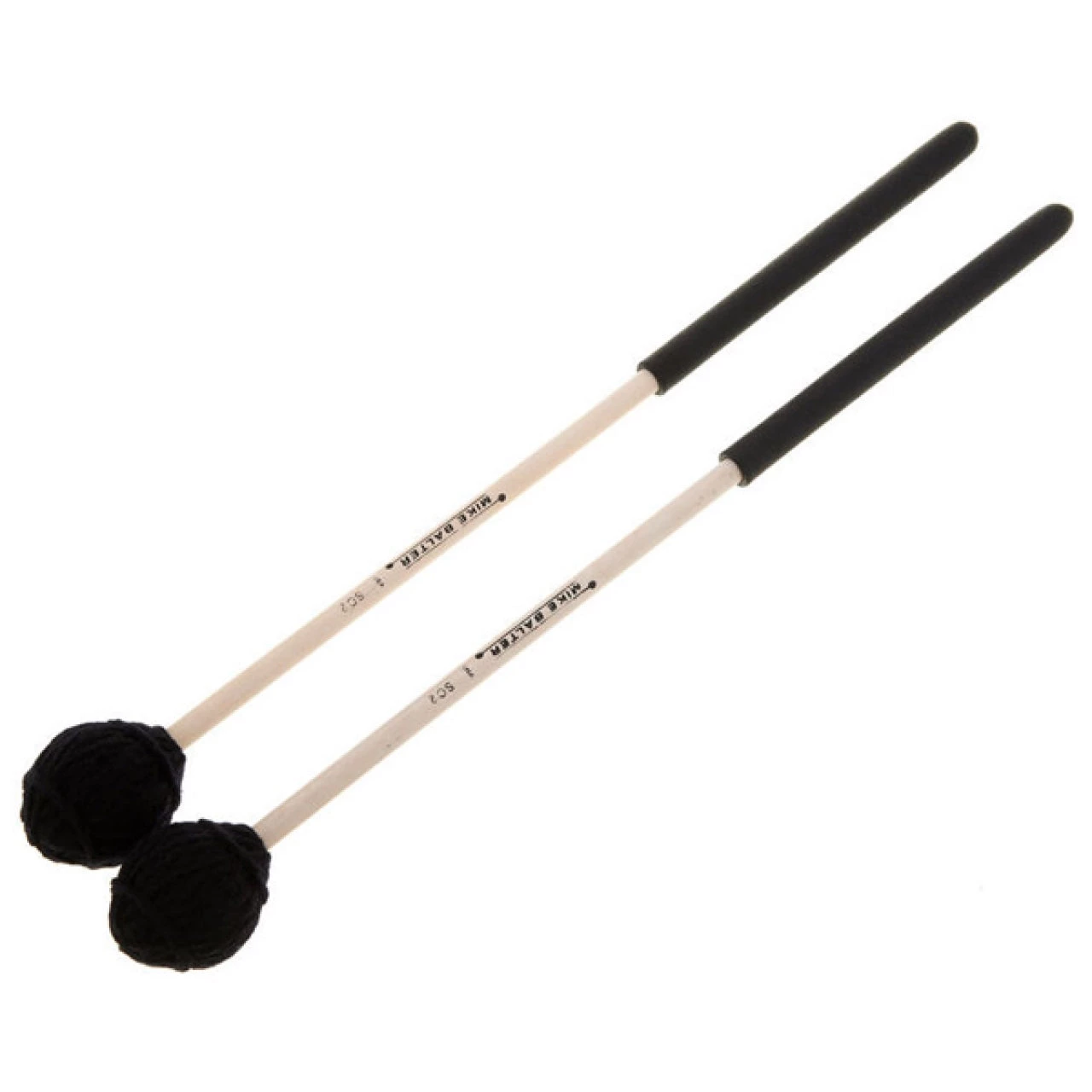 Medium soft mallets for playing the suspended cymbal.