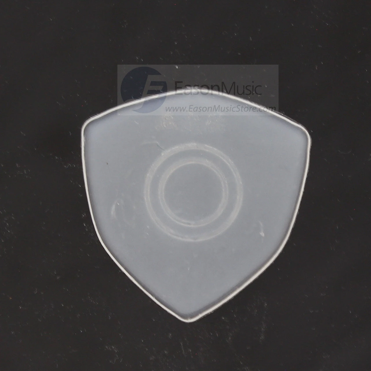The material of the pick reduces noise when you pick the strings.